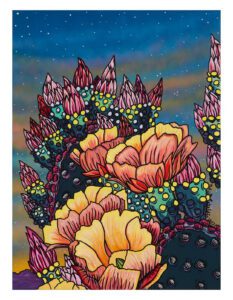 I am a US-based artist best known for creating large landscape paintings in a surrealistic style. My paintings depict American southwest landscapes with a touch of magical realism. Largely based on the seasonal blooms of the many cactus plants found in the Chihuahuan desert that stretches from northeastern Mexico to southwestern America, my work is an attempt to create a space for the viewer to catch a glimpse of nature’s eternity.